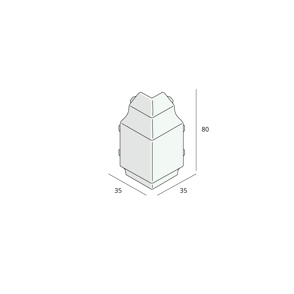 Dit hoekstuk gebruikt u voor de sierlijst als deze een uitwendige hoekverbinding vormt tussen de dakrandpanelen met sierlijst. De sierlijsten dienen strak in de hoekverbinding aangebracht te worden. Het resultaat? Een eenvoudig en strak afgewerkte uitwendige hoek.